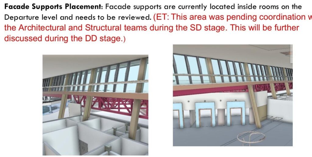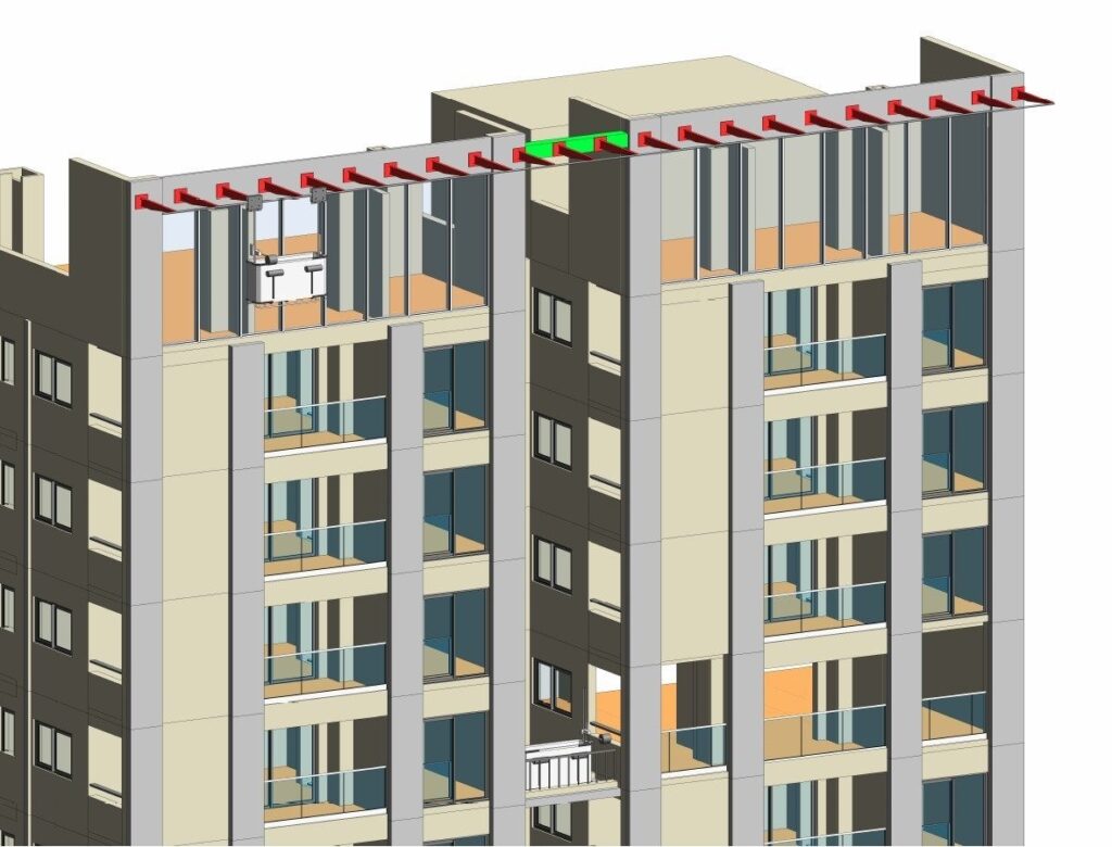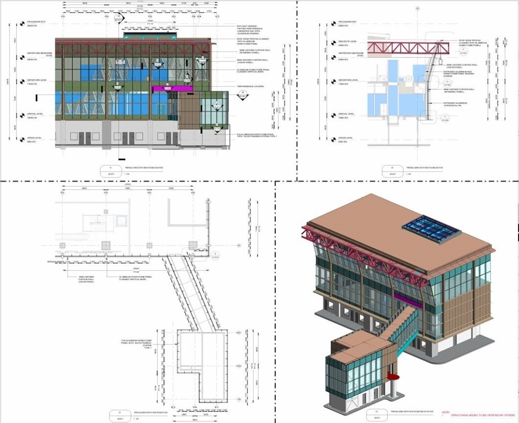 BIM clash detection in Navisworks or Revit identifies conflicts between the façade and structure, MEP services, or interior fit-out digitally before construction — avoiding costly on-site changes.